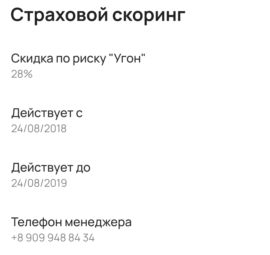 Приложение предоставляет возможность посмотреть страховой скоринг, для этого нажмите на "Ваш страховой скоринг" или на любую область блока "Балл вождения".