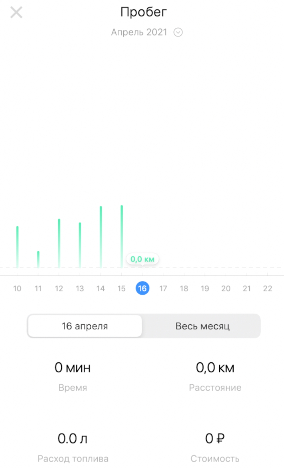 При просмотре детальной информации по пробегу вы можете пролистать график влево/вправо до нужной даты.